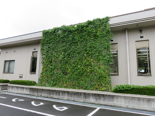 「緑のカーテン」とは、ゴーヤやアサガオ等のつる性の植物を建物の外壁等に這わせたものです。